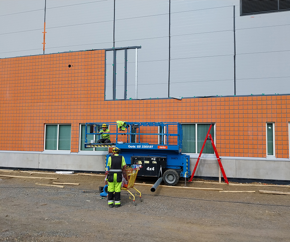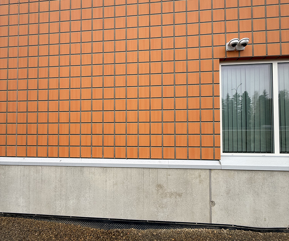 Bij de nieuwbouw lag de uitdaging in het behouden van de karakteristieke oranje tegelgevel van de bestaande bouw. Steni Finland gaf M2uur bv opdracht om deze tegels digitaal te reproduceren. Middels scripting ontwikkelde M2uur bv meerdere varianten en kleurtonen, die met een mock-up op locatie zijn beoordeeld.